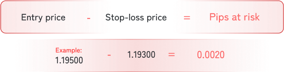 Using stop-loss is a critical element of risk management. It means you should know where to exit a losing trade to protect your account against excessive losses. Moreover, stop-loss makes you able to identify your potential losses called pips at risk, which is the difference in pip between the entry price and the stop-loss price. For instance, when you are going to buy EURUSD at 1.19500 and place the stop-loss at 1.1930, you have 20 pips at risk for this trade.